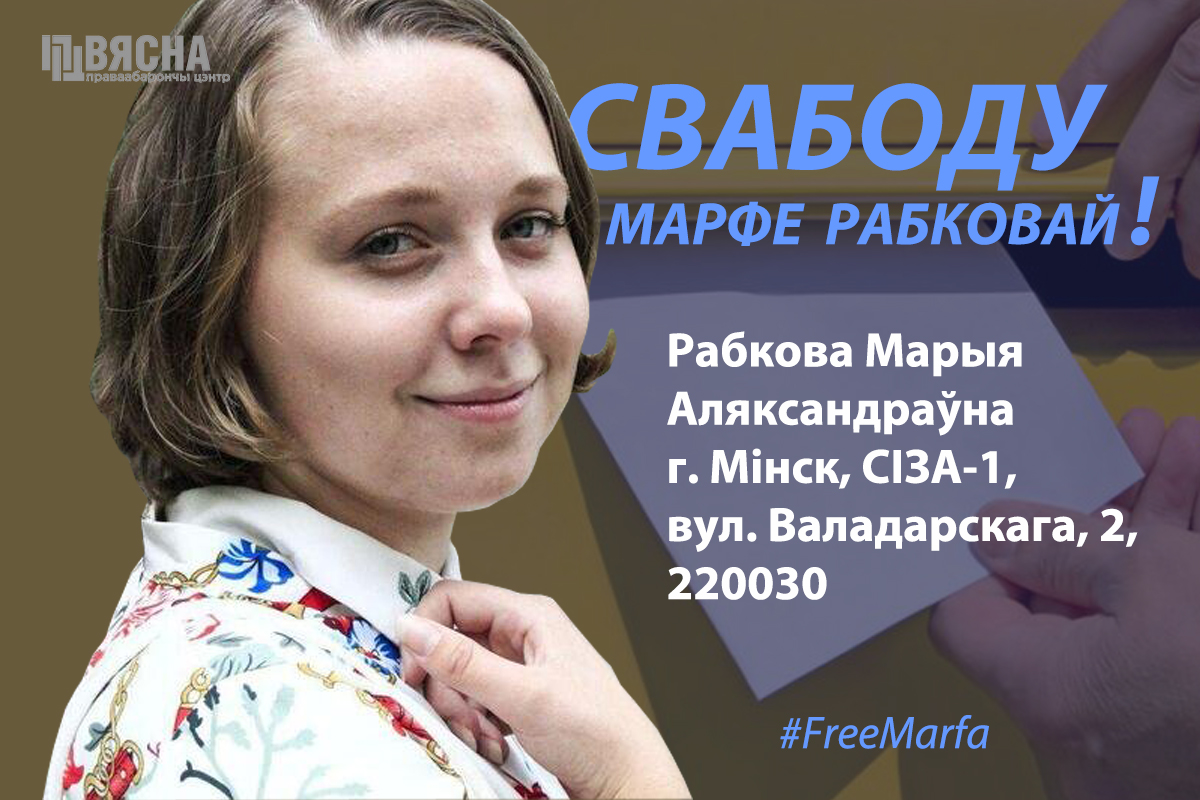 Падтрымай зняволеную праваабаронцу Марфу Рабкову і напішы ёй ліст!