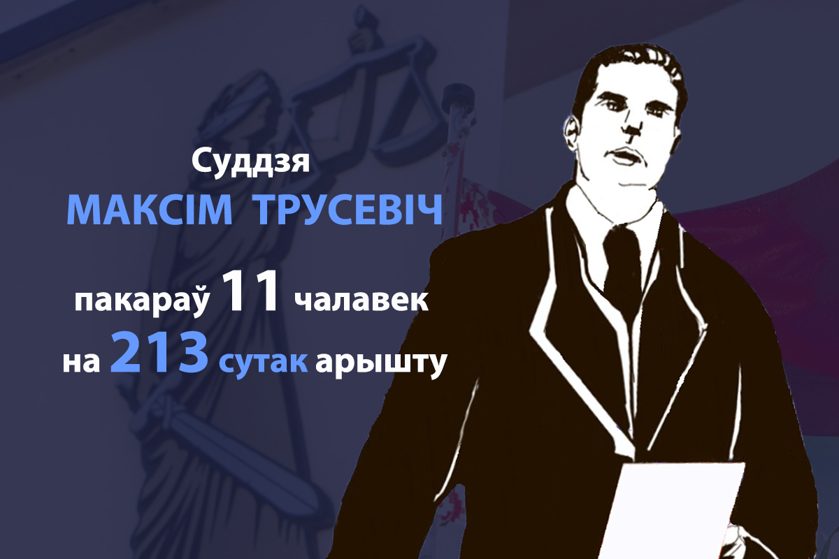 Суддзя Першамайскага суда Мінска Максім Трусевіч таксама імкнецца стаць рэкардсменам... Толькі за палову працоўнага дня, ён пакараў 11 чалавек на 213 сутак арышту!