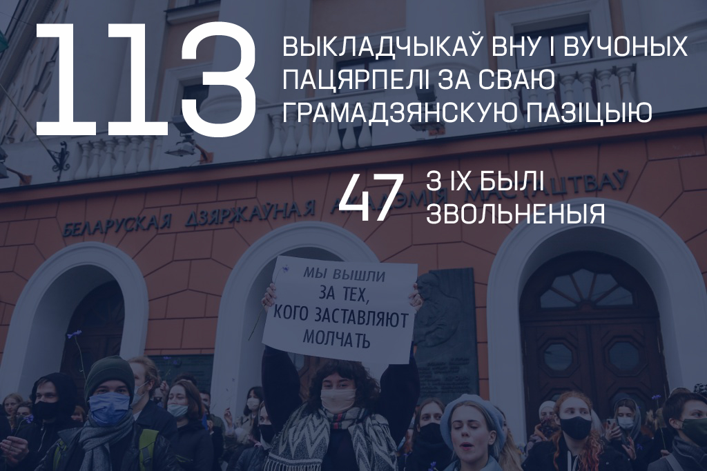 За апошнія паўгода за сваю грамадзянскую пазіцыю пацярпела больш за 100 выкладчыкаў ВНУ і вучоных, паведамляе офіс па адукацыі кабінета Святланы Ціханоўскай.pic.twitter.com/PeVGyucHuy