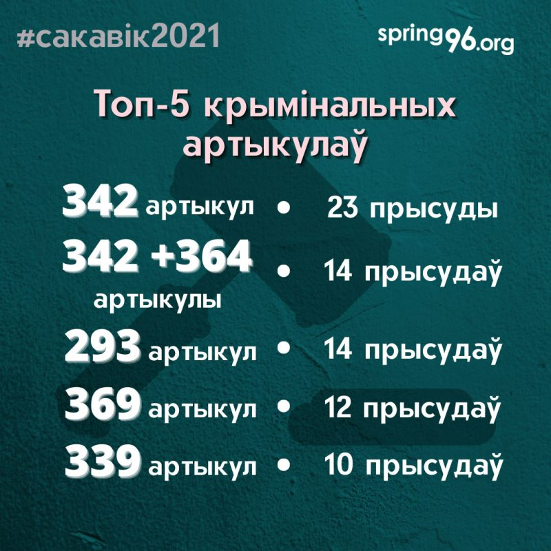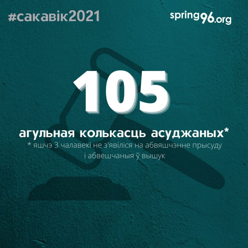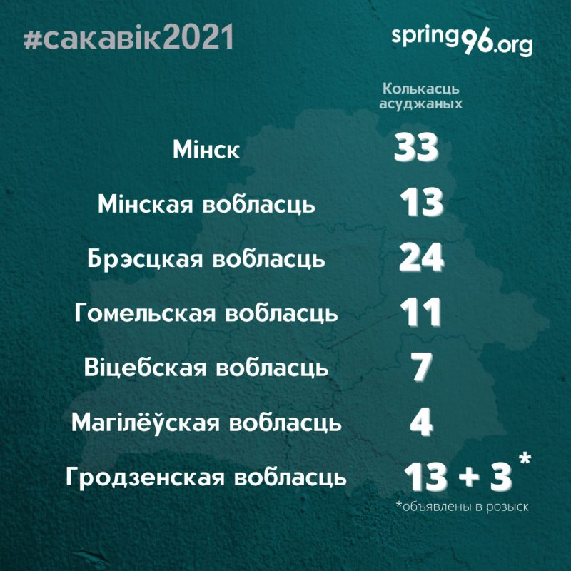 Па меншай меры 105 чалавек асуджана ў сакавіку па палітычных крымінальных справах - Агулам прысудзілі 176 гадоў і 7 месяцаў пазбаўлення волі - Не менш чым 16 жанчынам прызначылі розныя пакаранні - 2 непаўнагадовых хлопца пазбаўленыя волі на 3 гады кожны http://spring96.org/be/news/102708 pic.twitter.com/HvDL2Ue06A