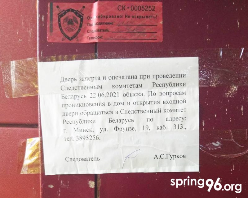 Адбыўся яшчэ адзін ператрус у праваабаронцы Зміцера Салаўёва. У гэты момант нікога не было дома. Ператрус праводзілі супрацоўнікі СК. Яны выламалі замок на дзвярах, правялі ператрус (невядома, што вынялі), а пасля паставілі свой замок і апячаталі дзверы. http://spring96.org/be/news/104224 pic.twitter.com/jvwBlz1MDh