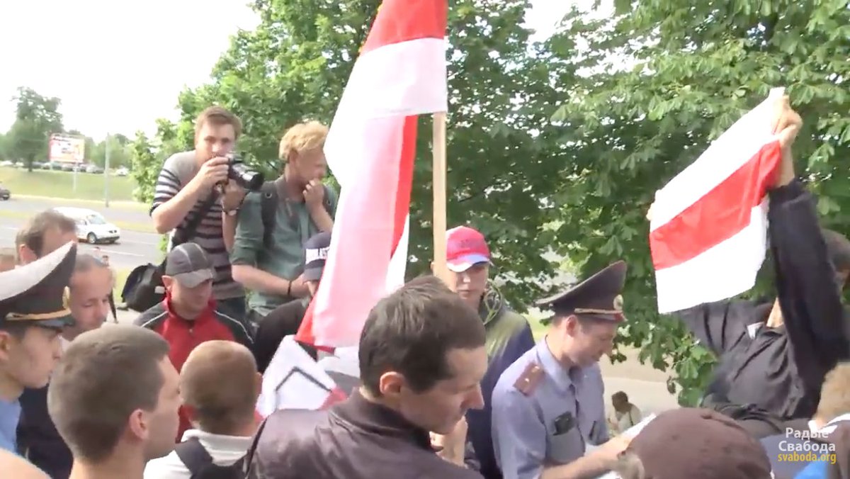 Зараз на акцыі супраць маскоўскага графіці. Актывістаў акружылі людзі ў цывільным. #HRBYpic.twitter.com/gqdzE8fHoB