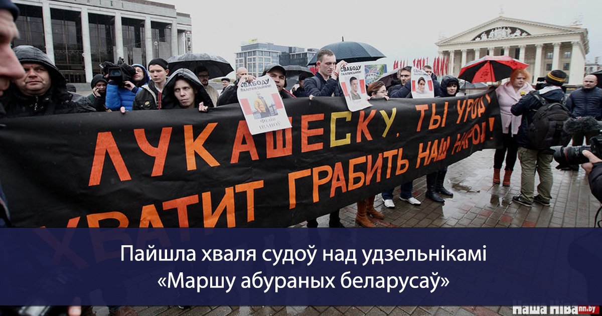 Больш за дзясятак чалавек ужо асуджаныя за ўдзел у «Маршы абураных беларусаў». Пратаколаў складзена яшчэ болей, таму суды будуць працягвацца. Звычайна ўдзельнікаў акцыі караюць вялікімі штрафамі: http://goo.gl/5wTB7h