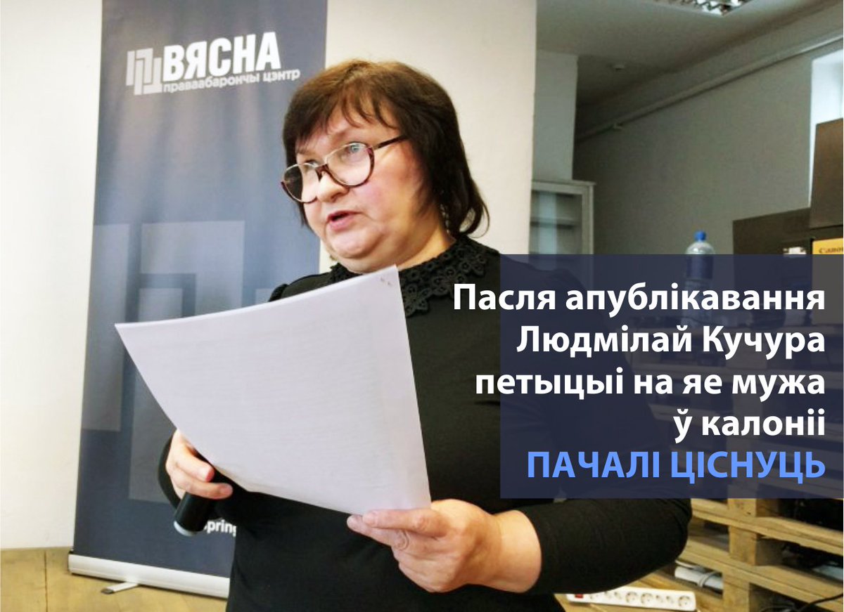 Памятаеце петыцыю Людмілы Кучура за перадачу паўнамоцтваў Дэпартамента выканання пакаранняў Міністэрству юстыцыі? Пасля яе ў калоніі ізноў ціснуць на асуджанага Пятра Кучуру.