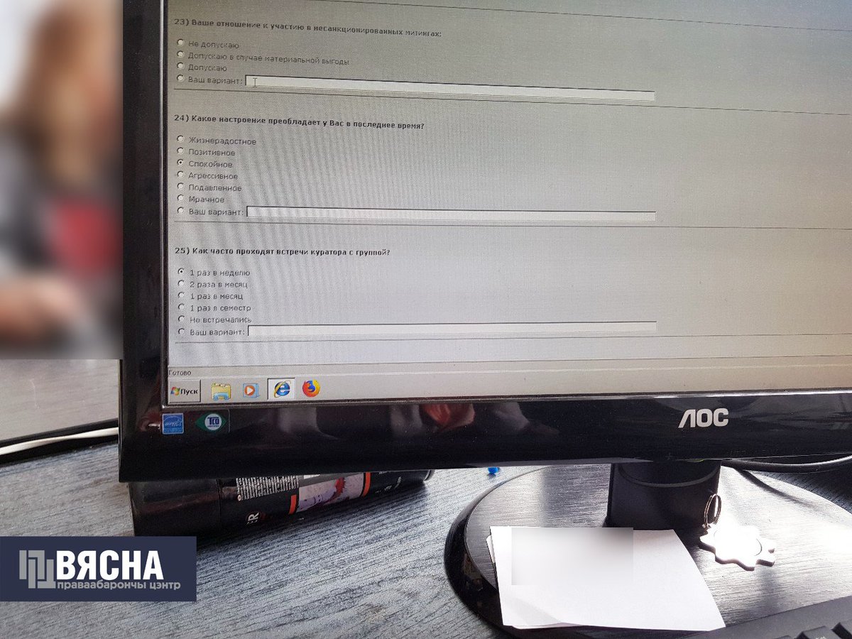 А тым часам студэнты БНТУ праходзяць тэсціраванне. Апроч асабістага настрою ў іх таксама пытаюцца пра стаўленне да ўдзелу ў несанкцыянаваных мітынгах.