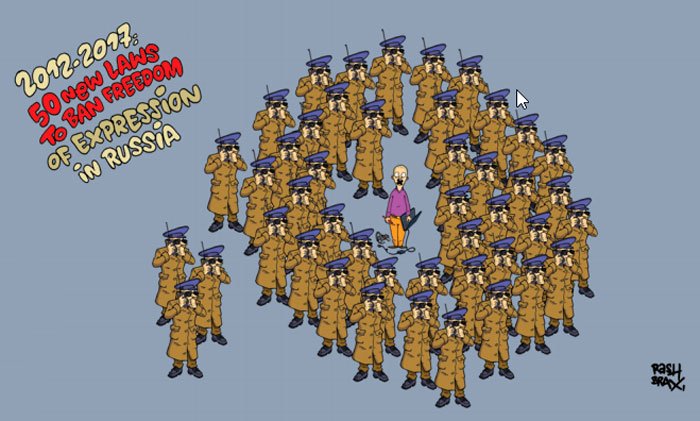 Згодна з новым даследаваннем FIDH — пасля перавыбрання Уладзіміра Пуціна ў 2012-м, былі прынятыя каля 50 новых антыдэмакратычных законаў, прызначаных задушыць галасы апазіцыі і павысіць у грамадстве ўзровень страху і самацэнзуры.