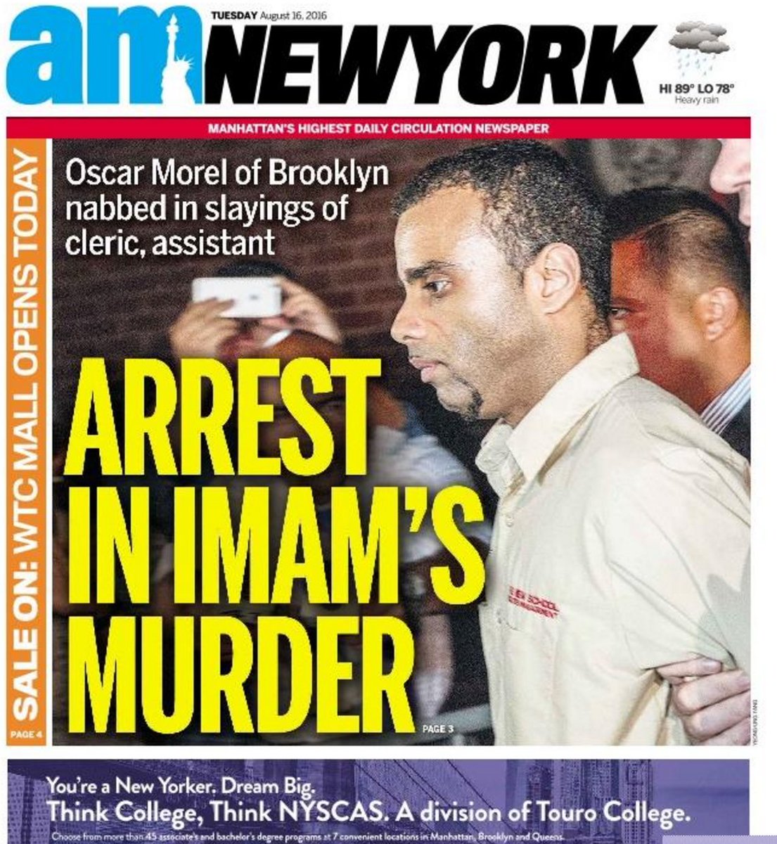 Freebies: arrest in killing of imam; students visit medical examiner's office.