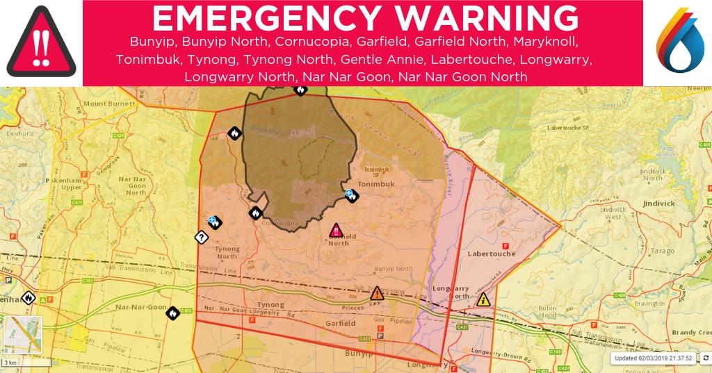 This Emergency Warning is for Bunyip, Bunyip North, Cornucopia, Garfield, Garfield North, Gentle Annie, Labertouche, Longwarry, Longwarry North, Maryknoll, Nar Nar Goon, Nar Nar Goon North, Tonimbuk, Tynong, Tynong North. Take shelter indoors immediately http://emergency.vic.gov.au/respond/#!/warning/7109 …pic.twitter.com/XJ4Cfi3hdi