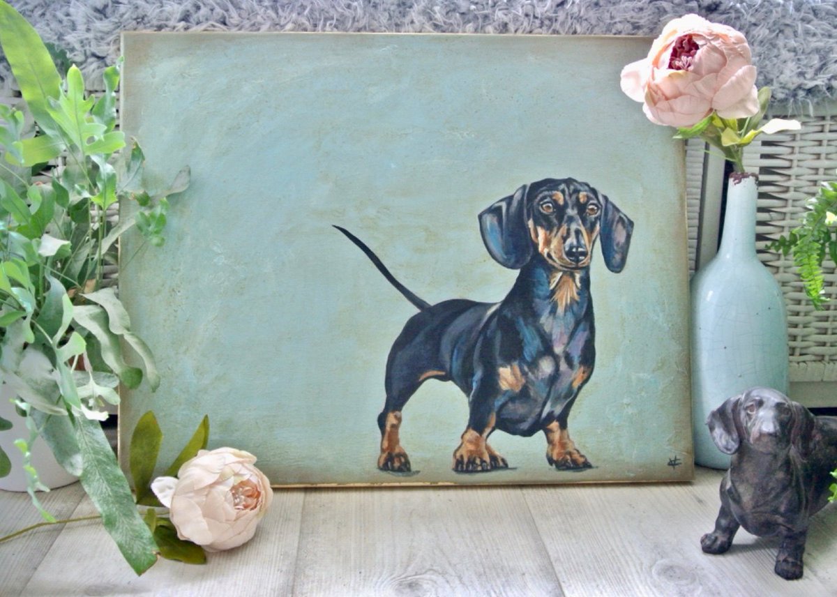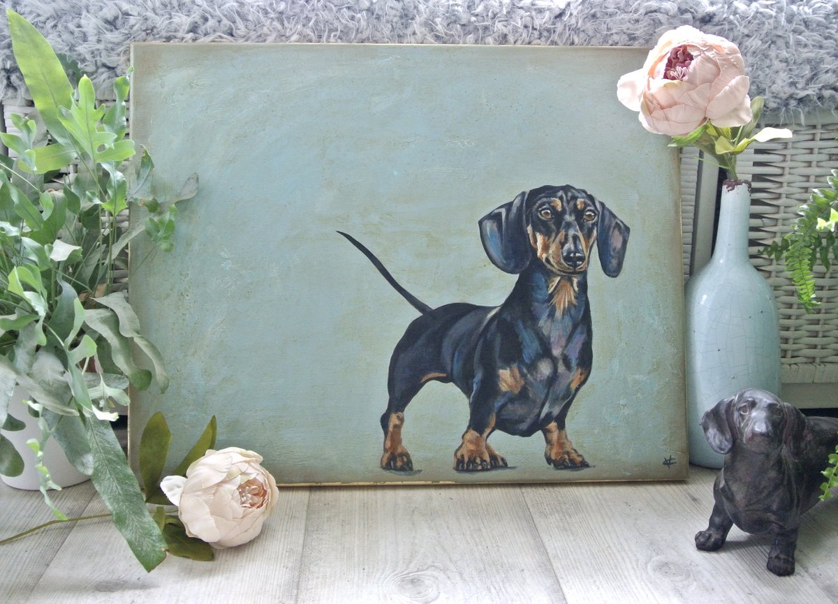 #etsy shop: Dachshund, black and tan dachshund art, original dachshund painting, gold metal leaf edging, FREE UK DELIVERY! H16" x W20" https://etsy.me/2mfyEaA#housewares#homedecor#blue#living#lovedogs#painting#birthdaypic.twitter.com/vrqd5D0ud3
