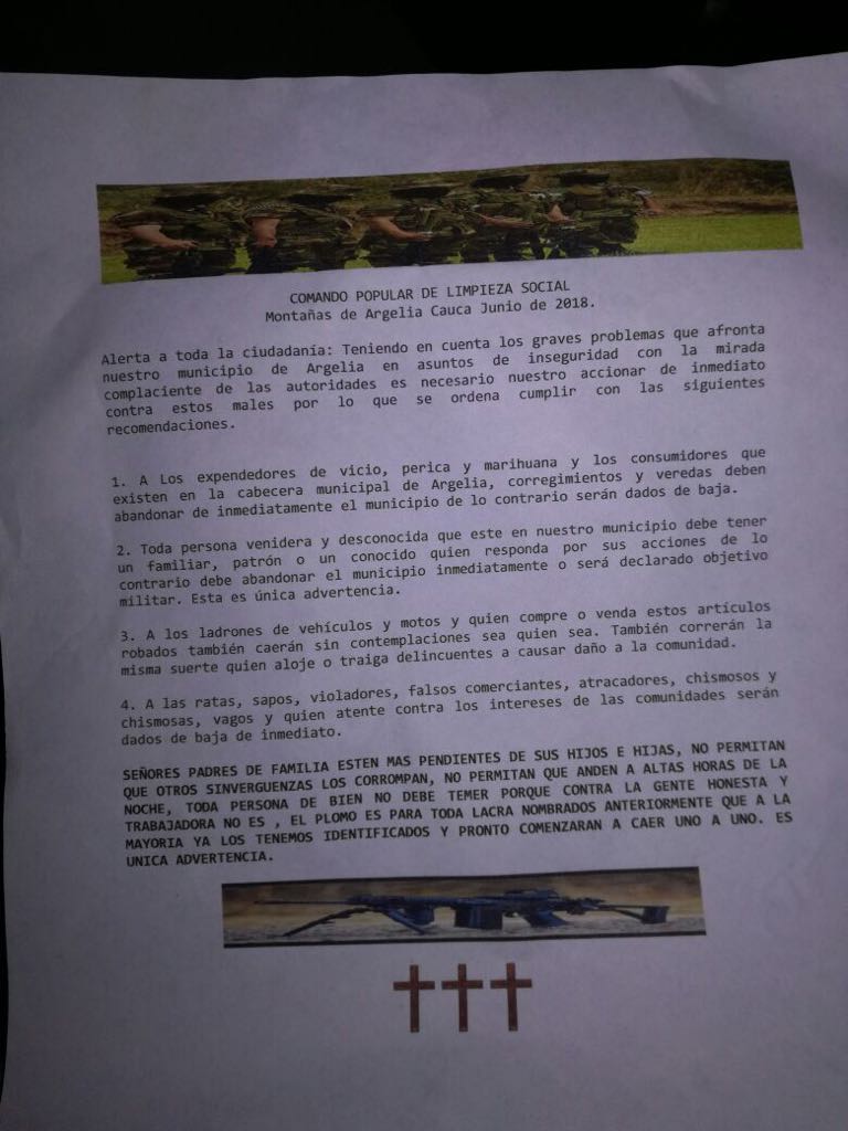 19 lideres asesinados en 8 dias, una masacre y amenazas de muerte llegan a todos los territorios, en lo que pareciera tristemente la reactivación de los grupos neoparamilitares. Donde están las medidas de proteccion urgente? El rechazo y accion del actual y el nuevo gobierno?pic.twitter.com/jQ0dyO1PNO