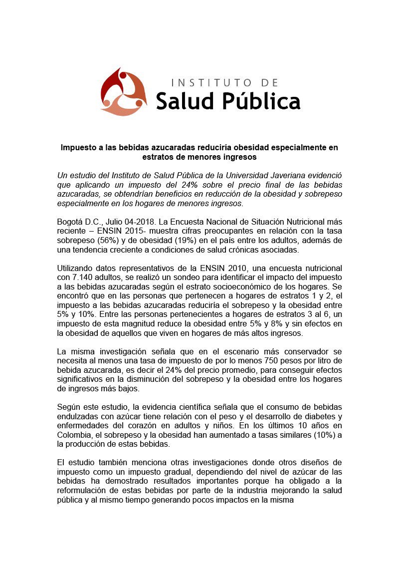 Estaría de acuerdo con la aplicación de un impuesto del 24% sobre las bebidas azucaradas, si se comprobara que este reduce la obesidad y el sobrepeso en las personas pertenecientes a familias de menores ingresos.pic.twitter.com/iSpE6Hksqg