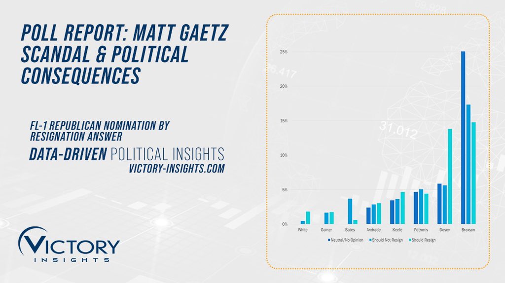 Long story short: Matt Gaetz’s base has not yet abandoned him. But if he does resign, the race to replace him could get interesting. Access the full poll report here: http://bit.ly/GaetzPoll  #GaetzGate #Gaetz #Florida @MattGaetz @RepMattGaetz (7/7)pic.twitter.com/tFSfTkHSYq