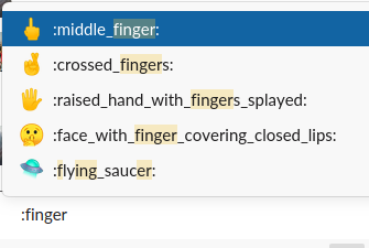@SlackHQ, you want to send a "fingers crossed emoji", but the suggestion brings up a middle finger first lolpic.twitter.com/J4CEk18JkV