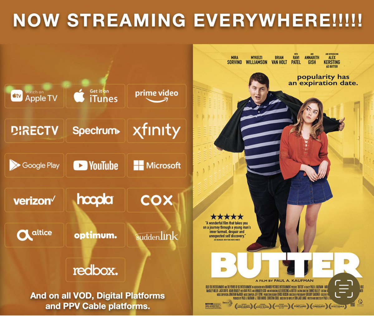 #Butter is streaming everywhere today-it will give you all the feels-check it out!pic.twitter.com/E5jiIyYU00