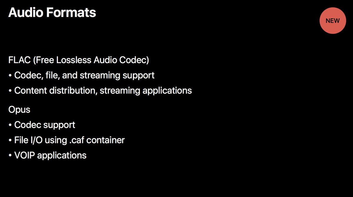 Looks like Apple starts supporting open-source audio formats. From this year's "What's New in Audio" session. https://developer.apple.com/videos/play/wwdc2017/501/ …pic.twitter.com/9tdDQLIHUz
