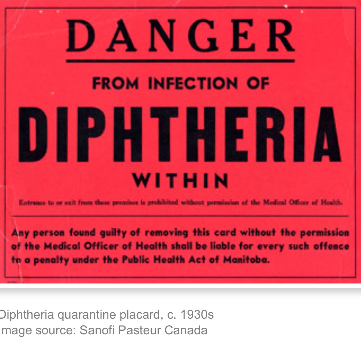 Dr. Welch and his team in Nome had an expired batch of diptheria antitoxin. This was pre vaccination era and diptheria was known as the “strangling angel of the children”! A thick pseudo membrane forming in the kids’ throat would kill by suffocation. Pic:isolation card (Sanofi)pic.twitter.com/55S4QhpTpC