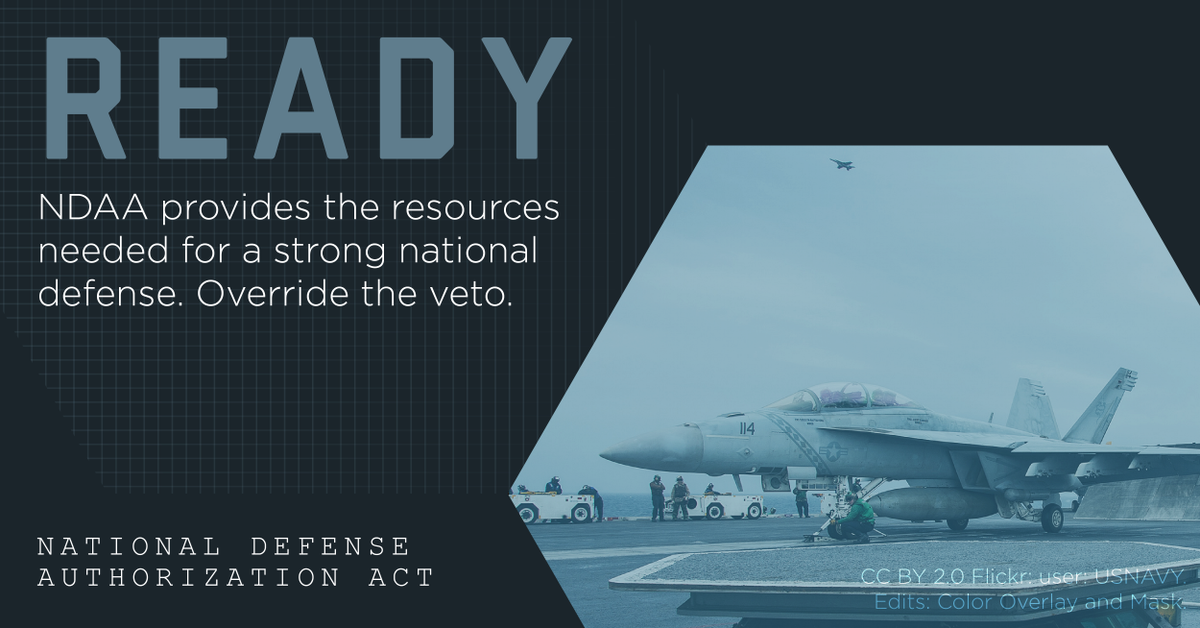 We passed the NDAA and President Obama vetoed it. Now it's time to fund our military and #OverrideTheVeto.pic.twitter.com/bAwRch8nLl