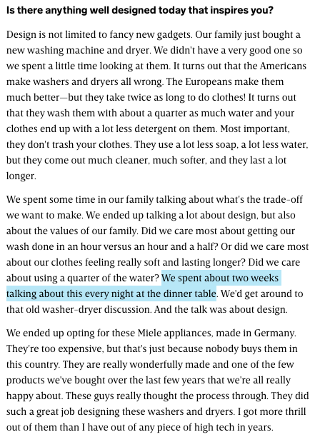 if someone claims to be the second coming of steve jobs, the first question I ask is, how do they talk to their families about household appliances? people focus too much on the "great" part of "insanely great" obsession runs all the way through https://www.wired.com/1996/02/jobs-2/ pic.twitter.com/s4l7wbn8oo