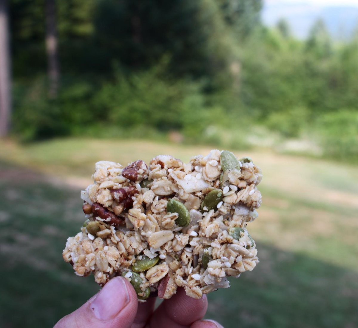 Me & this awesome piece of Lucky Rabbit Granola’s Pecan Maple R going to walk down & say hello to the bees in hivepic.twitter.com/H6INSXT3ZY