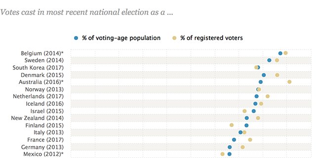 U.S. trails most developed countries in voter turnout http://pewrsr.ch/2rCCVsy pic.twitter.com/x3oCST6UzV