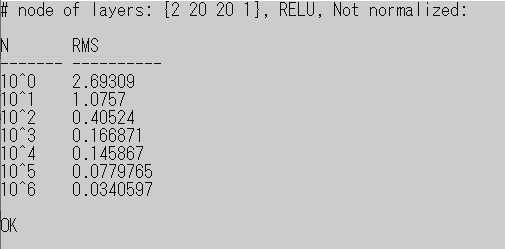 【ハーフギャモンNN】ReLU で学習すると重みが発散する件:ななな、なんということでしょう、隠れ層のノード数が20だと微分結果が不正になるのを発見してしまいましたよ(喜)。pic.twitter.com/KCGDxHRuaG