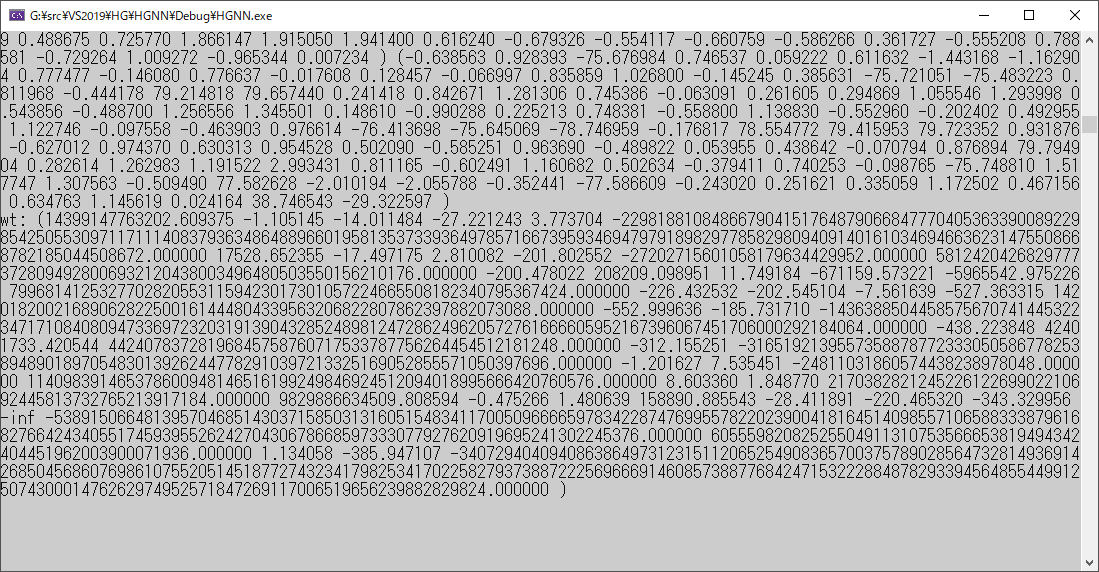 【ハーフギャモンNN】46局面学習した時点で重み係数の値が大変なことになってるぞ。なして???pic.twitter.com/OZZYAjzokz