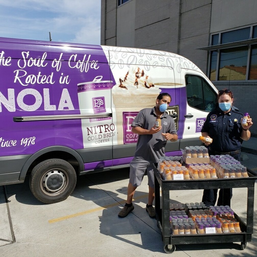 We stopped over at New Orleans Emergency Medical Services Foundation to drop off several cases of velvet iced lattes. A small token of our appreciation. #PJsCoffee #WereInThisTogether pic.twitter.com/jKudc84K0G