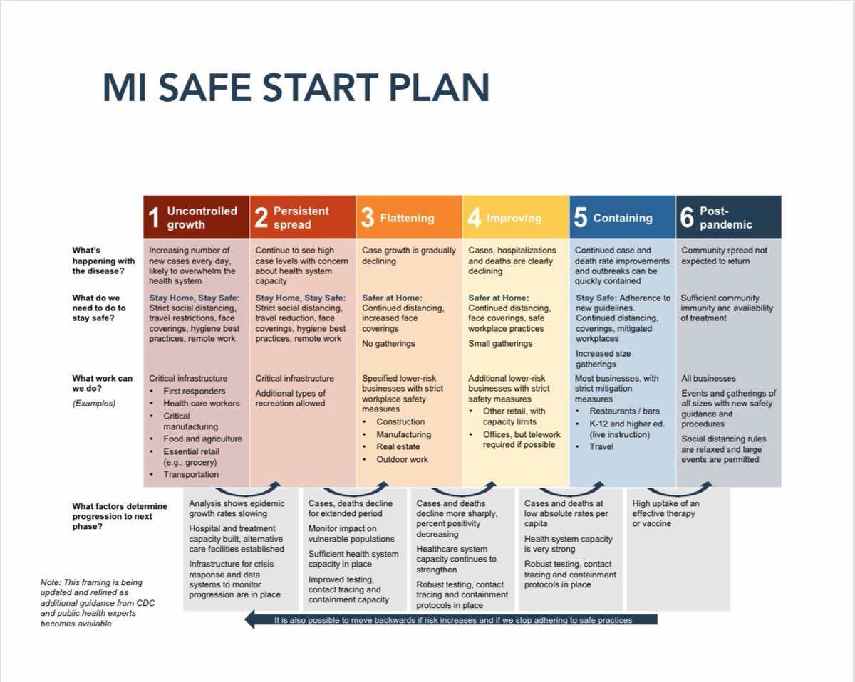 REOPENING: Gov. Gretchen Whitmer announces six-phase plan for reopening state’s economy during #COVID19 pandemic. She said we’re in phase three now:pic.twitter.com/f34MQlzFiZ