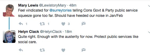 Interesting Twitter conversation this morning between two senior @SurreyCouncil councillors after election result #GeneralElection2017pic.twitter.com/8tjB1iCqGT
