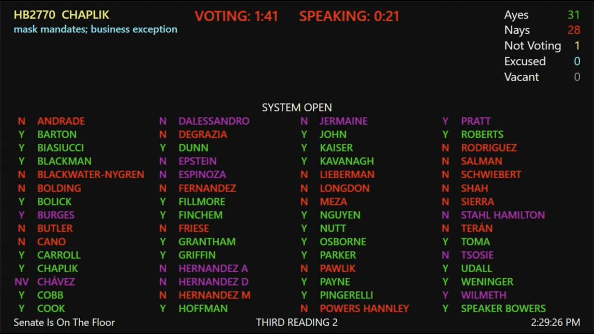 House passes HB2770, 31-28, allowing private business to be exempt from following/enforcing government mask mandates, restoring their freedom to make their own health protocols.