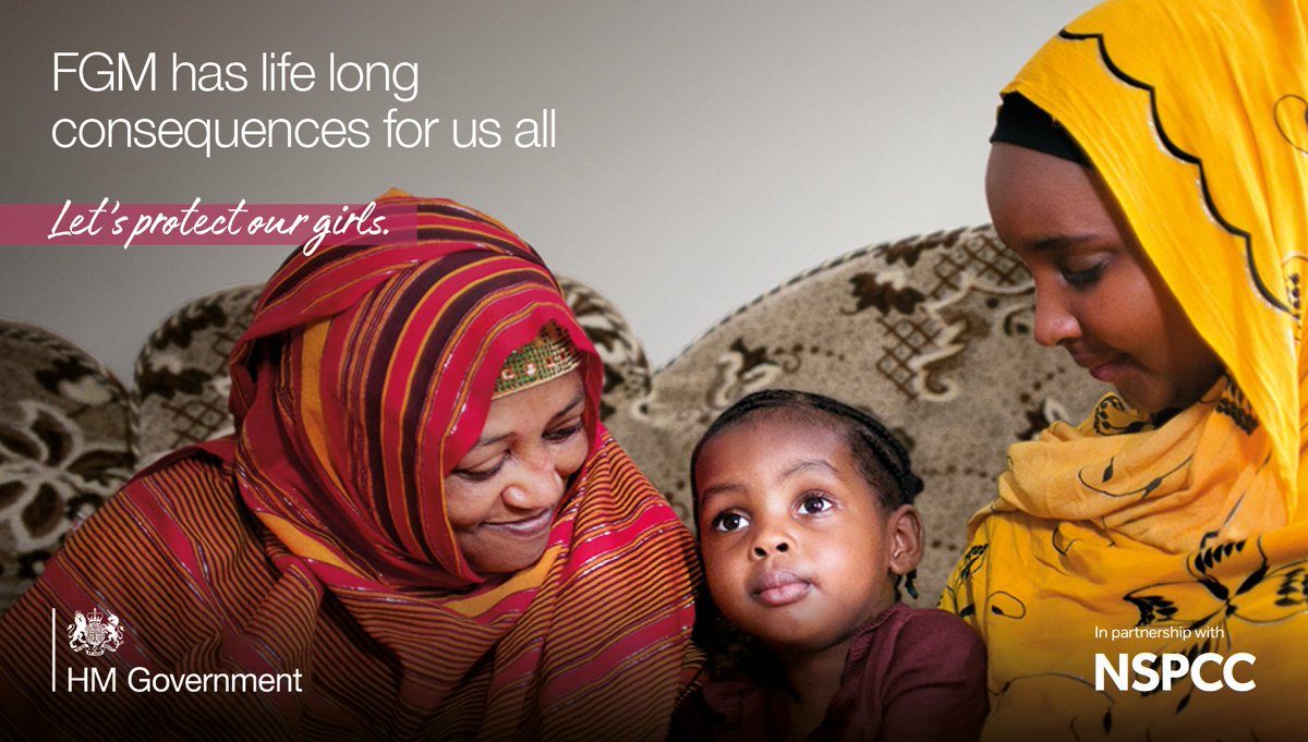 Together we can raise awareness of female genital mutilation (FGM) and encourage people to report it via the NSPCC. FGM is illegal. Let's protect our girls. Visit http://nspcc.org.uk/fgm to find out more.