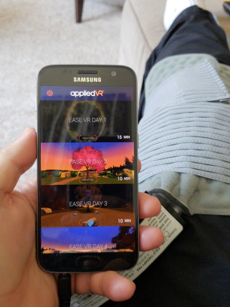 @AppliedVRhealth#VR system to manage post knee replacement#Pain without#Narcotics. Focus is on breathing from the diaphragm. It's amazing how something as simple as changing how you breath, can impact relaxation / pain distraction. pic.twitter.com/Dp81irWrkZpic.twitter.com/lVDdoktxCM