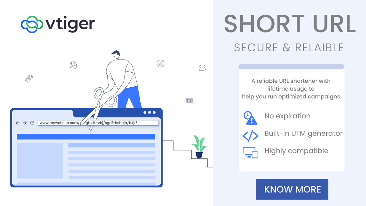 Having short, secure & reliable URLs is now slick as a whistle! Vtiger Short URL can shorten URL length to align with your character limit. Explore how Short URL works & optimize your campaigns. https://bit.ly/3gch97e