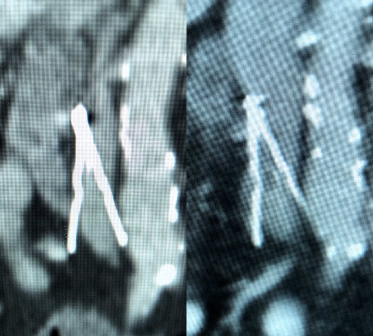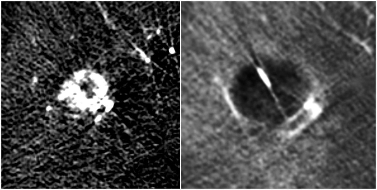 IVC filter doing its job! Clot trapped in filter (right) not seen 3 weeks before (left).