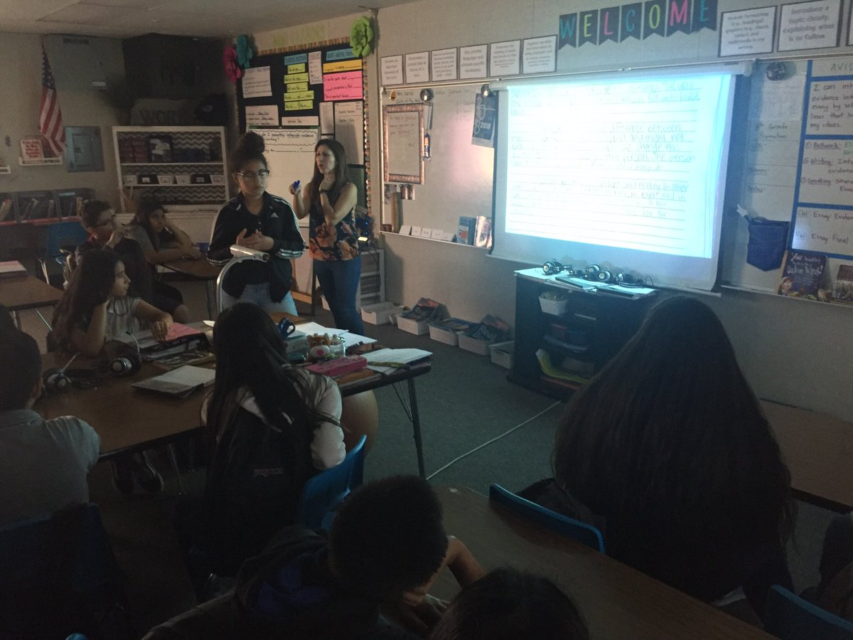 Waite Middle School’s AVID Excel students present their texts for peer review and support. Modeling matters.
