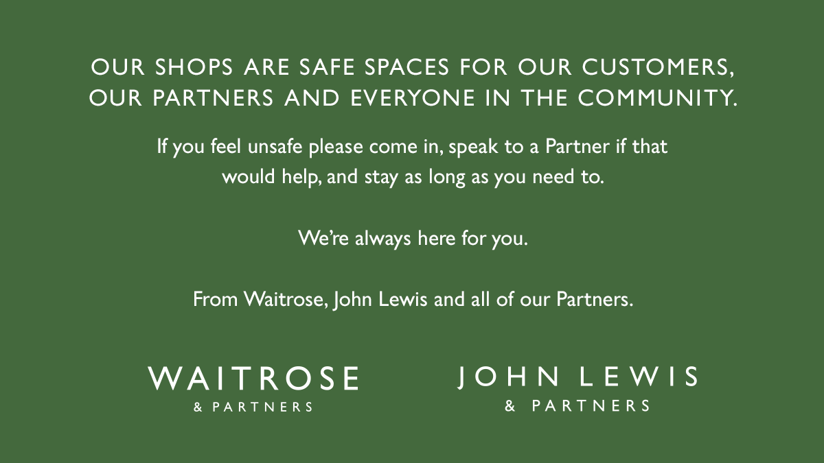 Our shops are safe spaces for everyone – our Partners, our customers and the community.pic.twitter.com/u7dYrZimsE