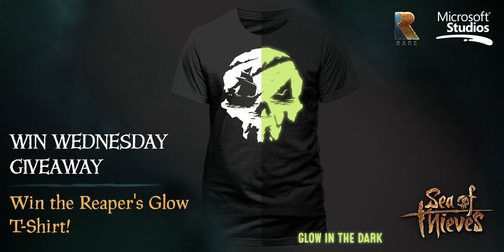 #WinWednesday time again! For a chance to win one of three spooky Reaper's Glow T-shirts, follow us (if you're not already) and retweet this before 4pm BST tomorrow. (Those who prefer a 100% success rate can just order one from the#SeaOfThieves store: http://bit.ly/SoTStore )pic.twitter.com/UTjgzgxZXV