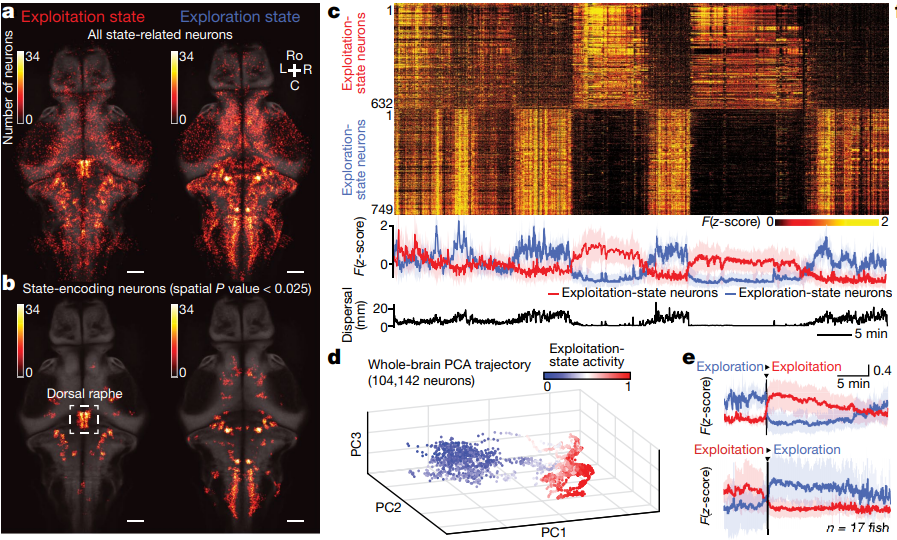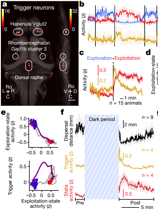 Internal states reshape the dynamics of the nervous system Whole-brain imaging of zebrafish larvae during foraging show distinct networks during foraging and exploration, with 'trigger neurons' that change the animal's state [Marques, Li] https://www.nature.com/articles/s41586-019-1858-z …pic.twitter.com/X16ALHLBfm