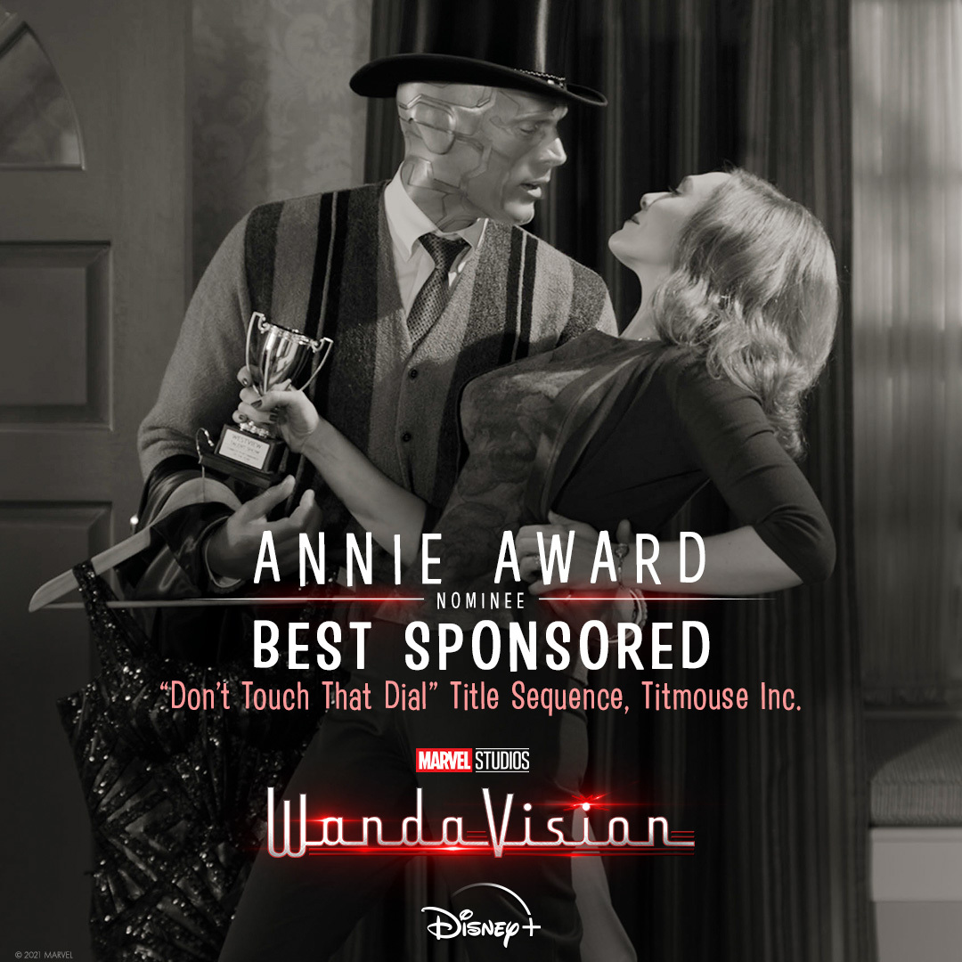 #WandaVision on its#AnnieAwards nomination for the title sequence of "Don't Touch That Dial"pic.twitter.com/GbIXn9ZGvi