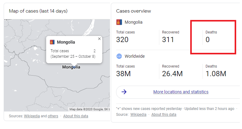 Mongolia still has yet to have a single person within its borders die from COVID-19. (4)https://twitter.com/wang_seaver/status/1316202251778621441?s=20 …
