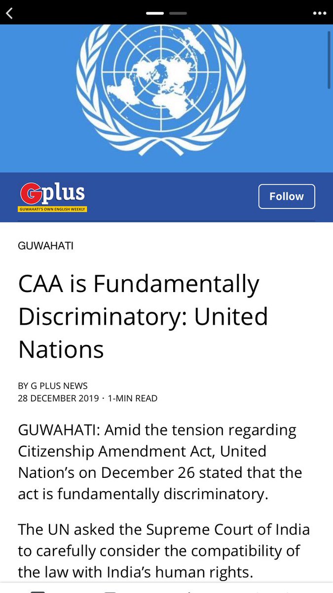 CAA is Fundamentally Discriminatory: United Nations https://www.guwahatiplus.com/daily-news/caa-is-fundamentally-discriminatory-united-nations?fbclid=IwAR3ZCv2OauObGJJkBgZufL4fcgXV-QvCK7d3kauU2A3WevbeZj1azJIJ0P0 …pic.twitter.com/Qh8yKrtMqW