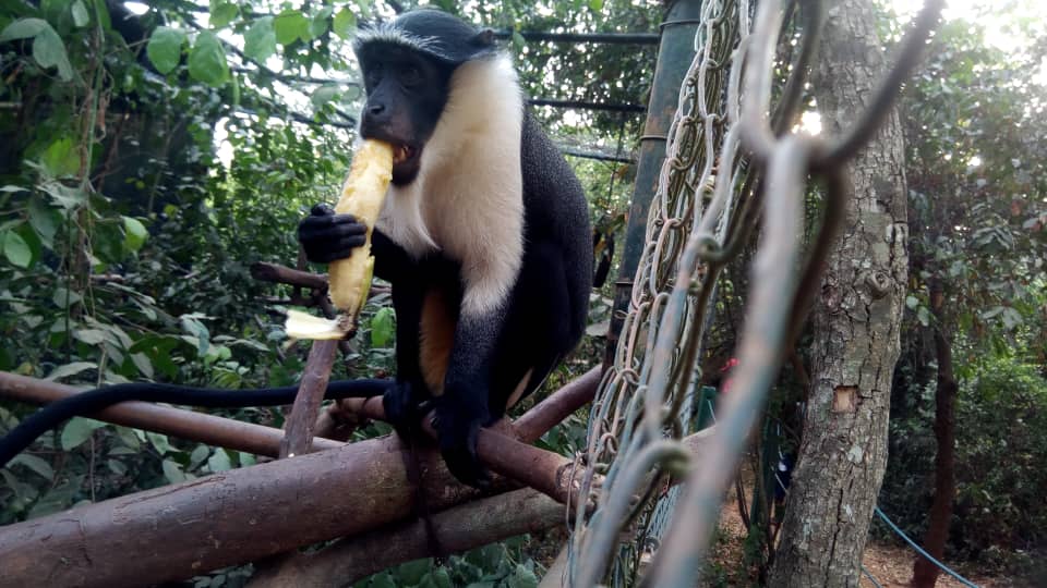 #FergusFriday! Fergus, our Roloway monkey (Cercopithecus roloway) loves#lunchtime at the Endangered Primate Breeding Centre! Here he is in his planted enclosure at#Accra#Zoo#retweet#lunch#banana @accratwitterhangout@cityofaccra @ghanaguardianpic.twitter.com/fKxOyNaM8r