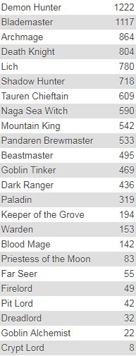 Fun Fact Friday: We have 2.260 Replays in our database with a total of 10.278 heroes. Here's a list of how often each hero is played. I will make a detailed search function in the future https://warcraft3.info/replays pic.twitter.com/aOlHetqWNQ
