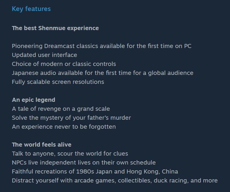 Shenmue 1 & 2 Steam page. It's actually real... http://bit.ly/2HAzOr9 pic.twitter.com/bIXHY0Fnhd