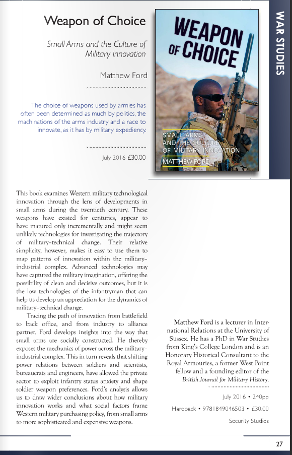 Lecturer in War & Security, Honorary Historical Consultant to @Royal_Armouries & former West Point fellow. Finishing up 'Weapon of Choice' with @HurstPublishers