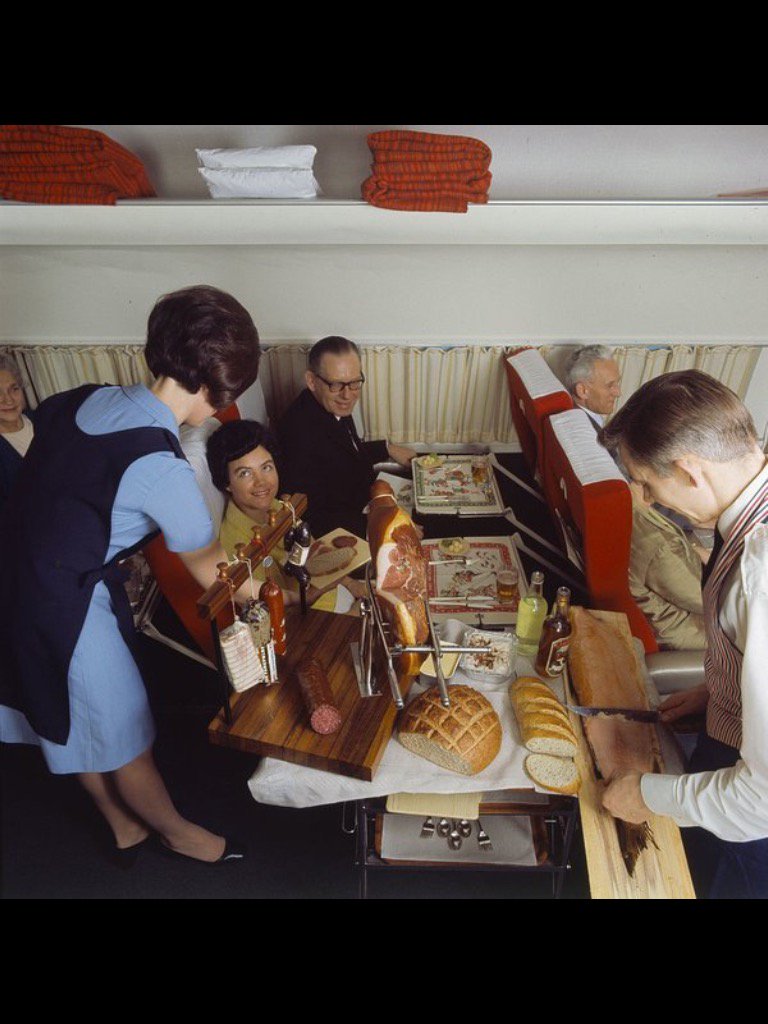 Air hostess and steward serving Scandinavian Country Style Buffet, SAS Scandinavian Airlines, 1969.pic.twitter.com/emKxNLN9d7