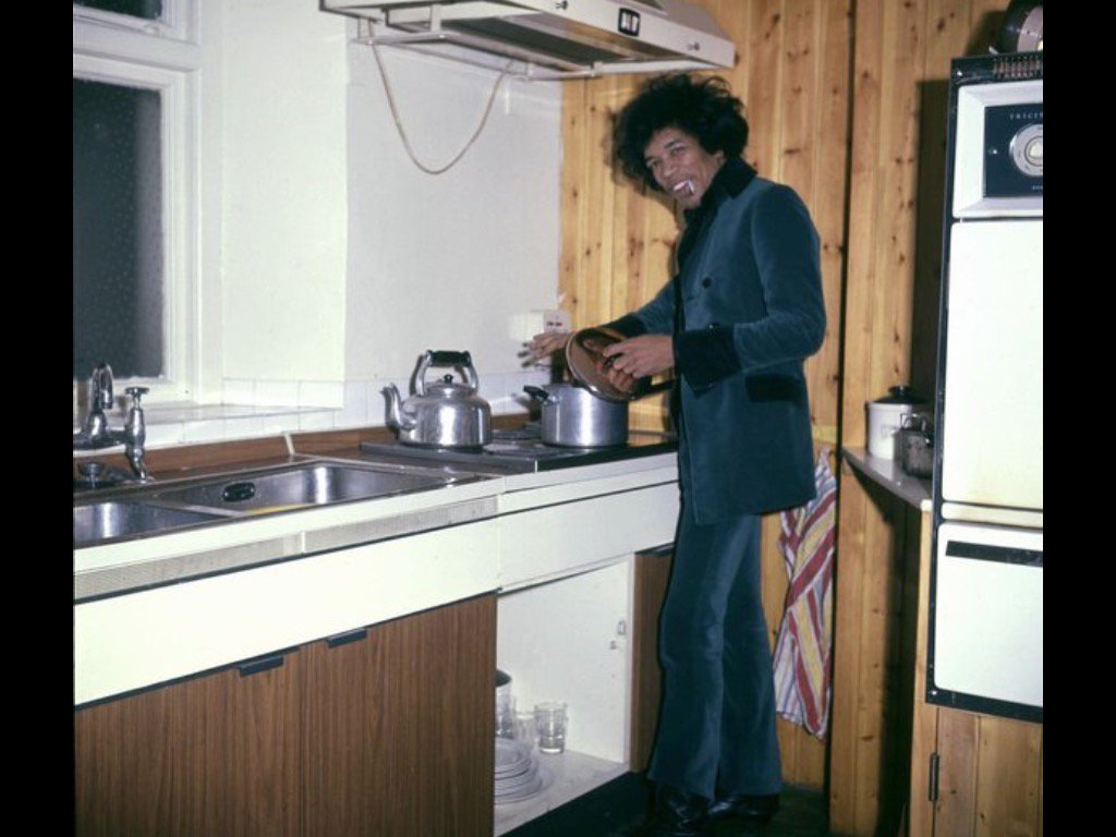 Jimi Hendrix in his kitchen at 34 Montagu Square, London, 1967.pic.twitter.com/lOIr4R4RgO