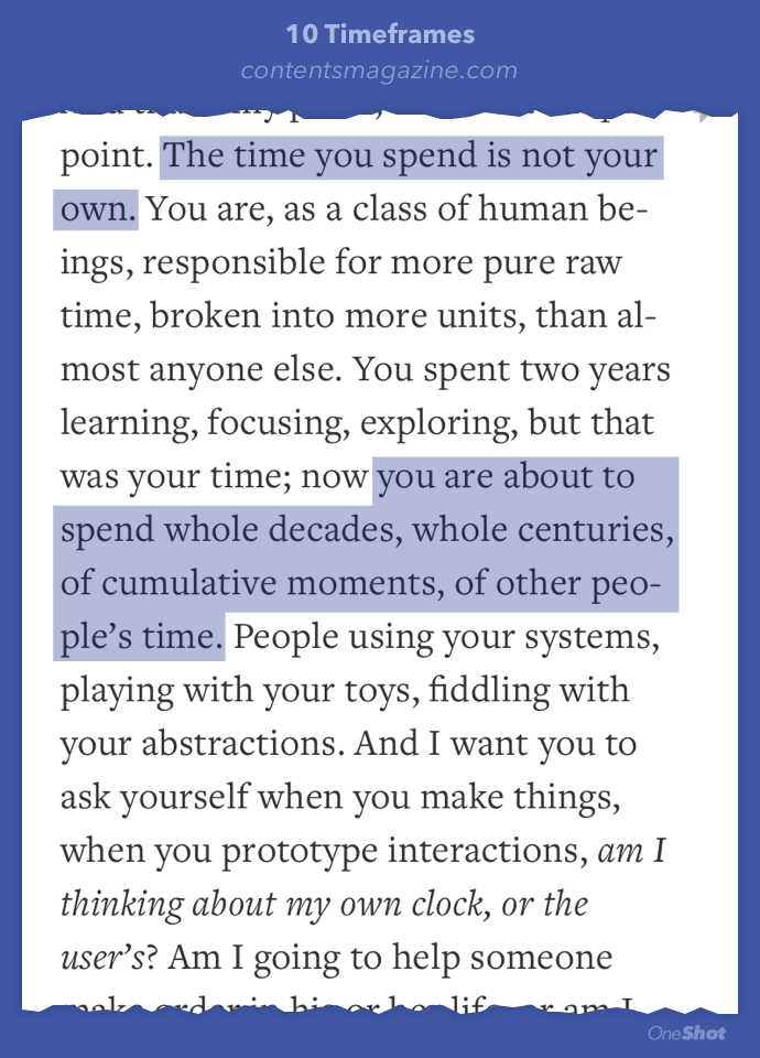 On the designer's responsibility to respect the user's time http://contentsmagazine.com/articles/10-timeframes/ …pic.twitter.com/4xx9lSFyHx