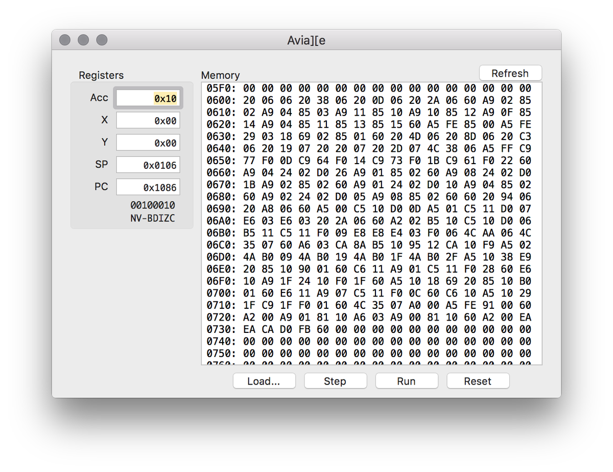 Had fun playing with 6502 emulation today (~25% of instructions implemented, cycle counts totally disregarded)pic.twitter.com/jA7qPCIS5O