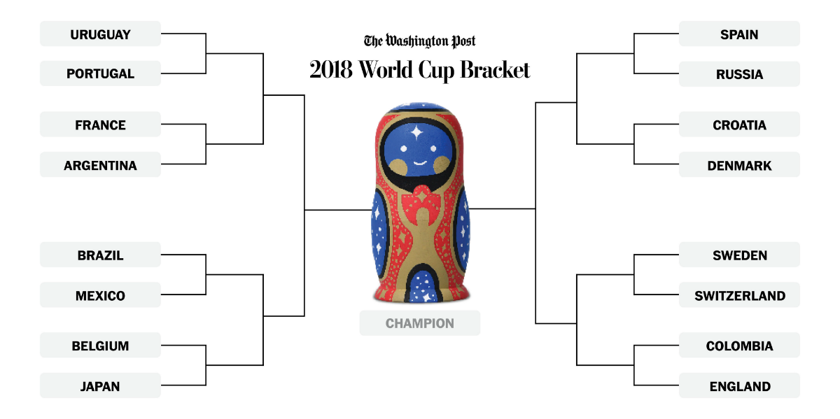 16 teams, 2 weeks, 1 trophy. The knockout round is here. Keep up with our World Cup newsletter: https://wapo.st/worldcup pic.twitter.com/eM8CLZ3klc